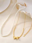 3 Piece Pearl Necklace, Bow Necklace and Stud Earrings Jewelry Set