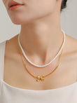 - Material: Synthetic pearl, 18K gold-plated, Titanium steel
