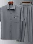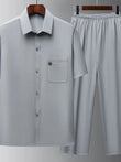 Men's Full Size Button Up Short Sleeve Top and Pants Set Plus Size