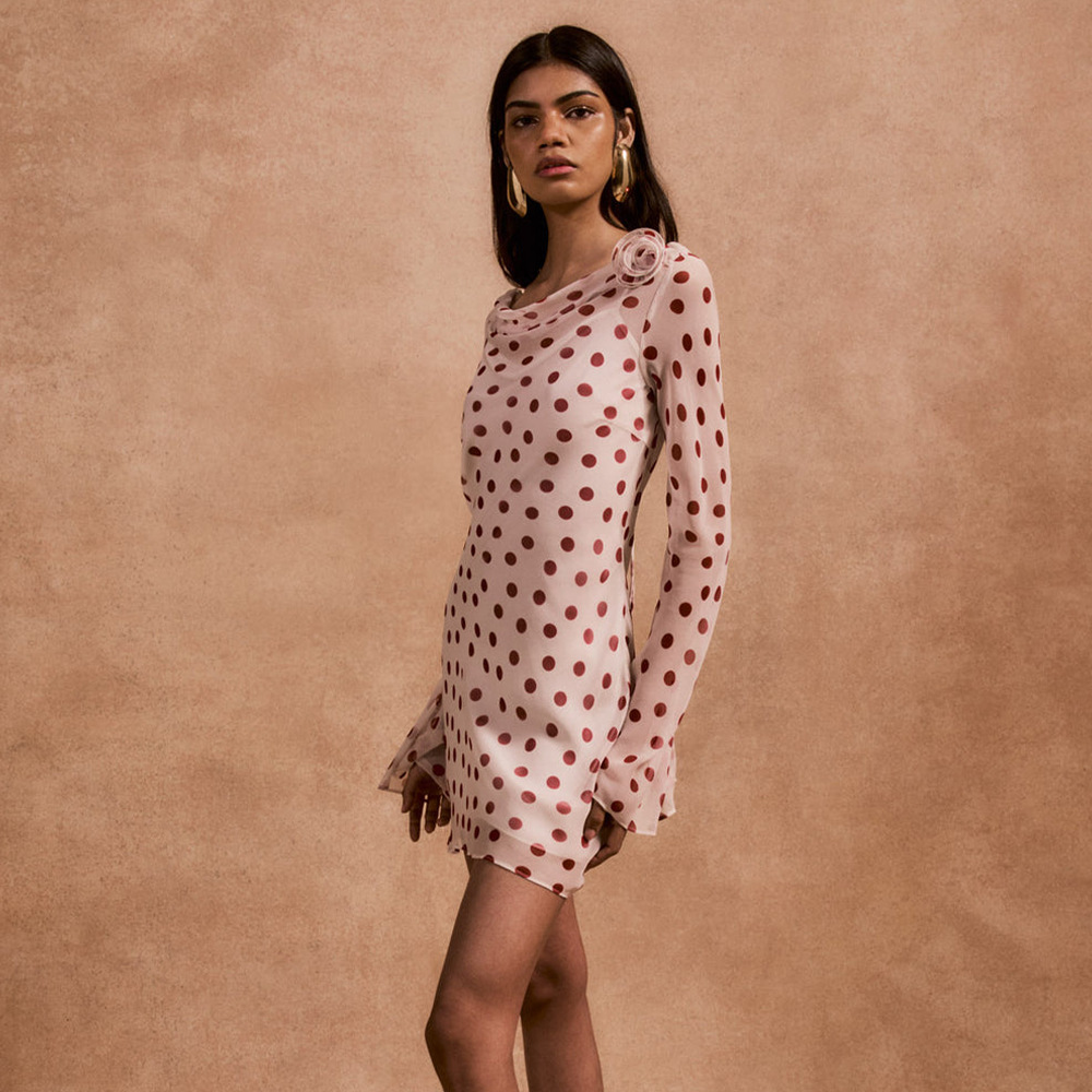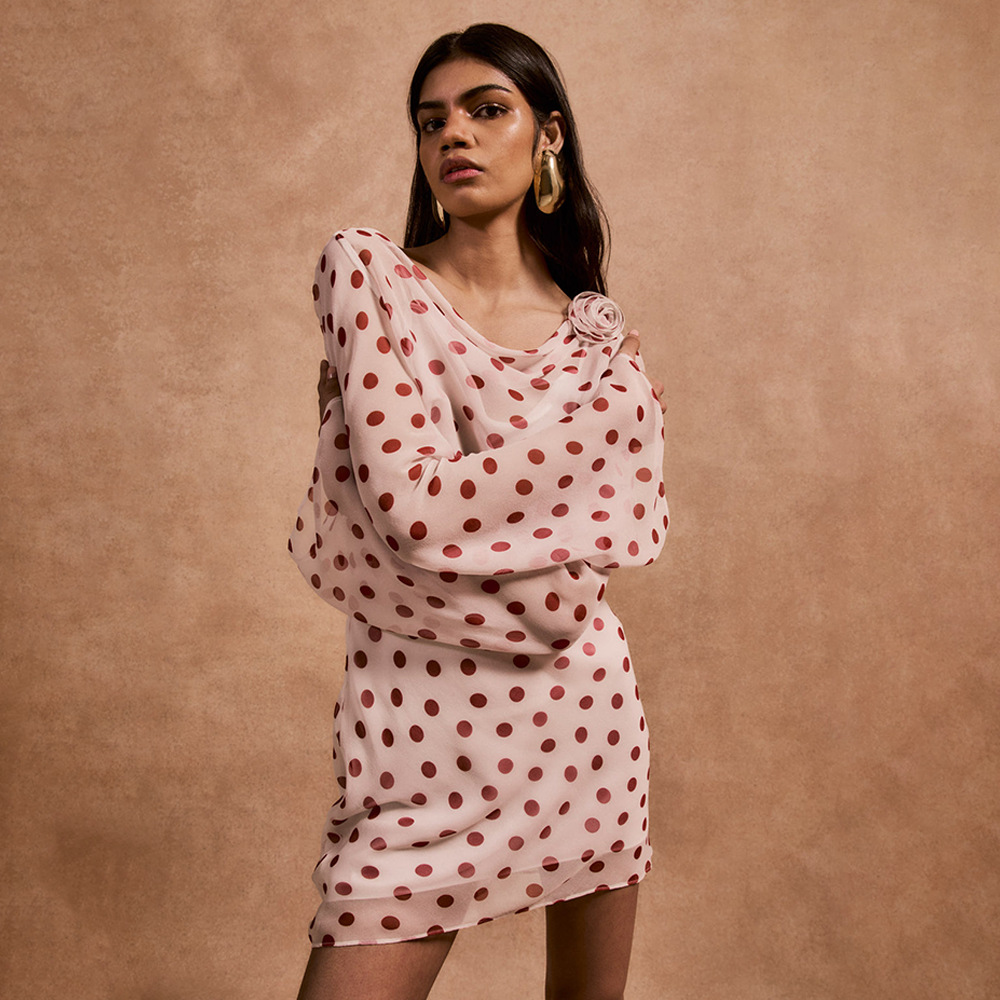 Fashion elements: Print, polka dots, open back