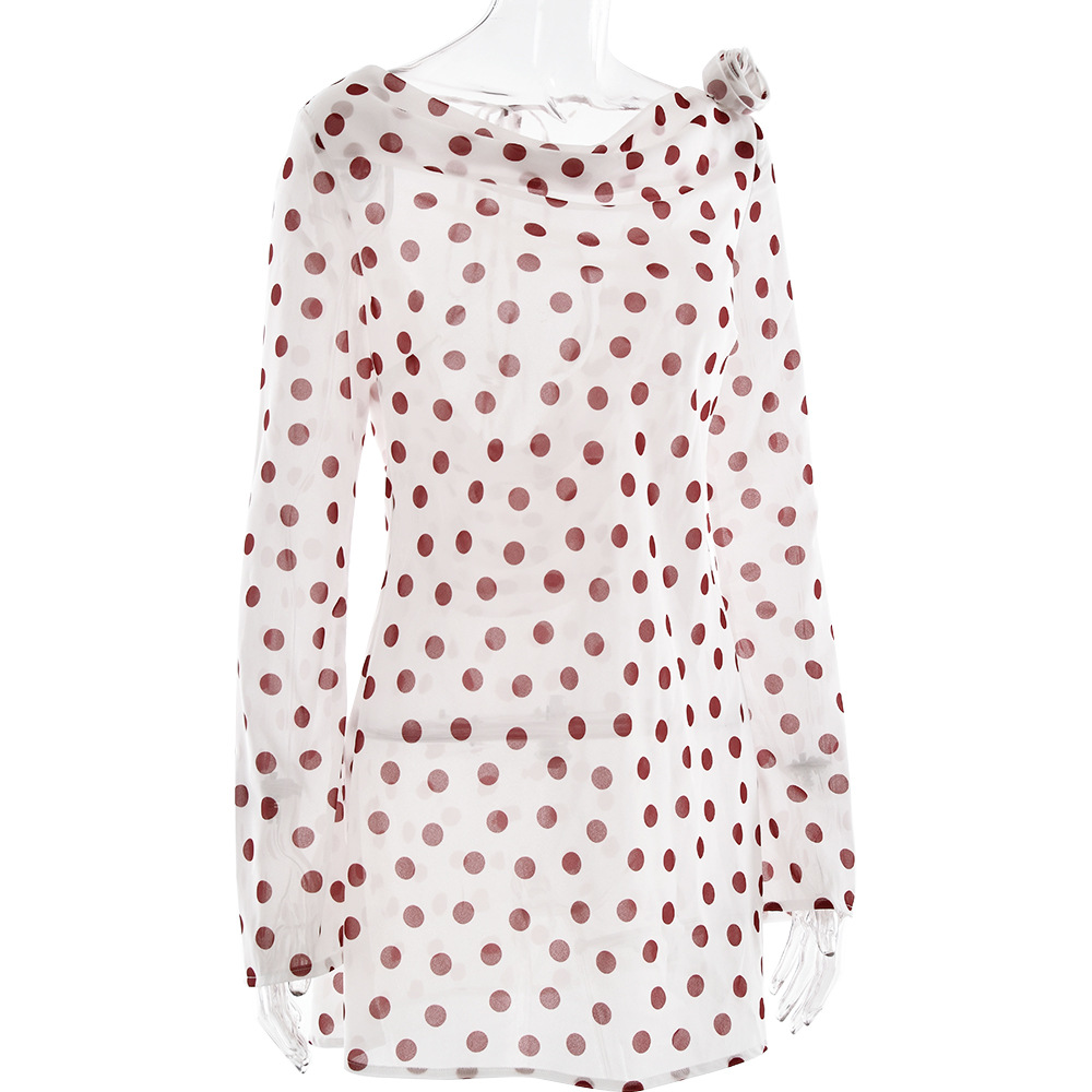 Sexy Scoop-Neck Backless Polka-Dot Chiffon Dress