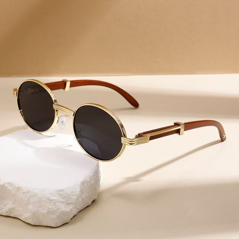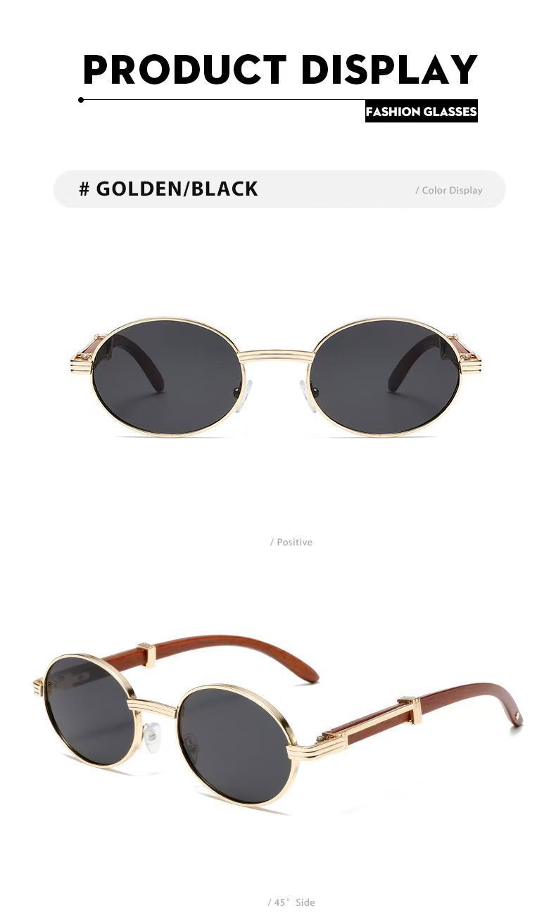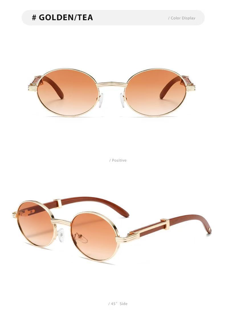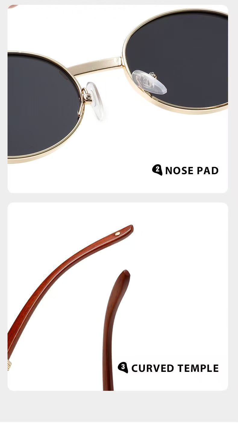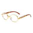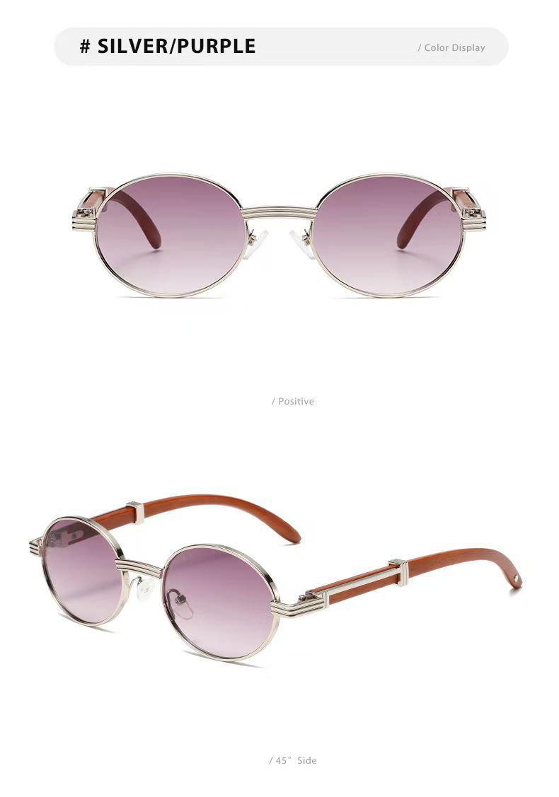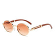 Metal Oval-frame Sunglasses With A Wood-grain Finish