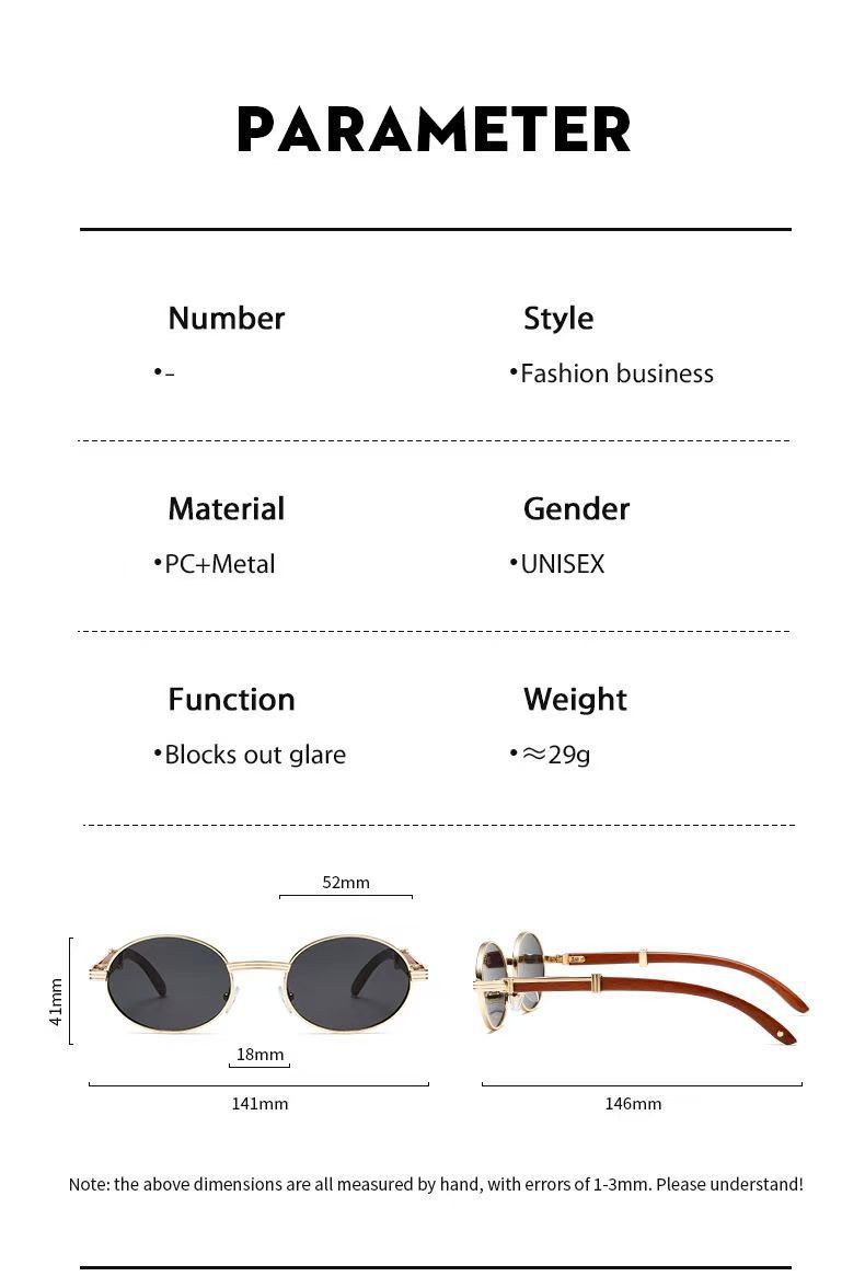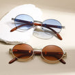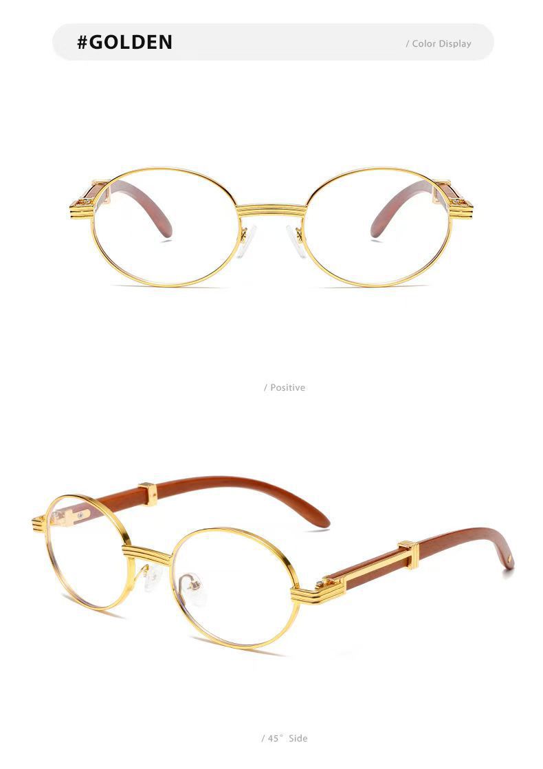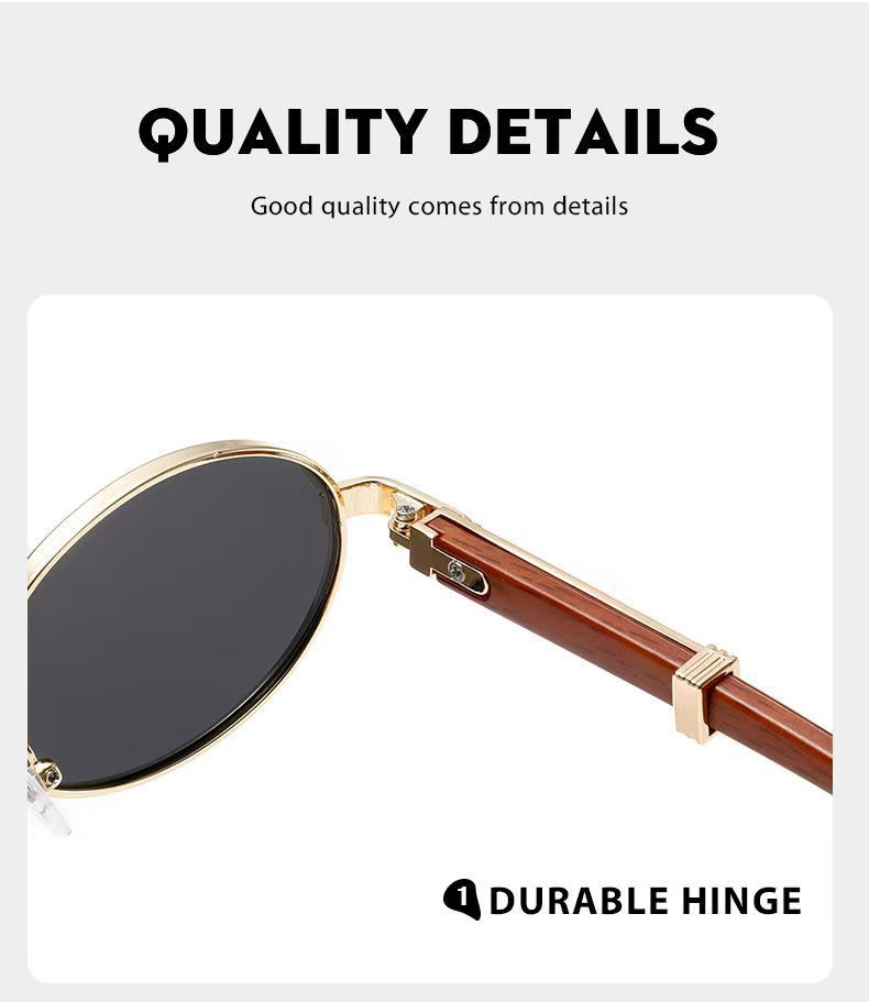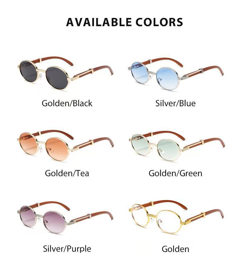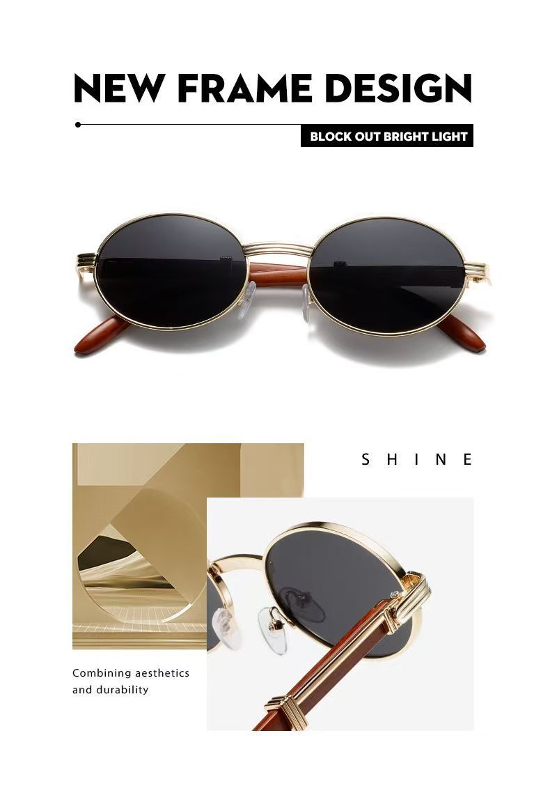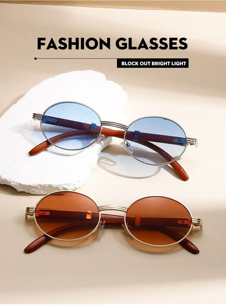 Metal Oval-frame Sunglasses With A Wood-grain Finish
