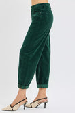 The high-rise crop barrel corduroy pants offer a stylish and retro-inspired addition to your wardrobe. The barrel cut provides a unique and flattering silhouette that is both modern and timeless. Made from corduroy fabric, these pants offer a soft and textured feel, perfect for colder seasons. The high-rise waist elongates the legs and creates a streamlined look. Pair these pants with boots and a sweater for a cozy and chic outfit that channels vintage vibes with a contemporary twist.