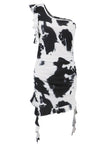 Ruffled Tie-Dye Single Shoulder Mini Dress