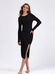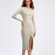 Vestido de punto de manga larga con cuello redondo y espalda descubierta para otoño e invierno