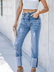 High Waist Distressed Straight Leg Jeans